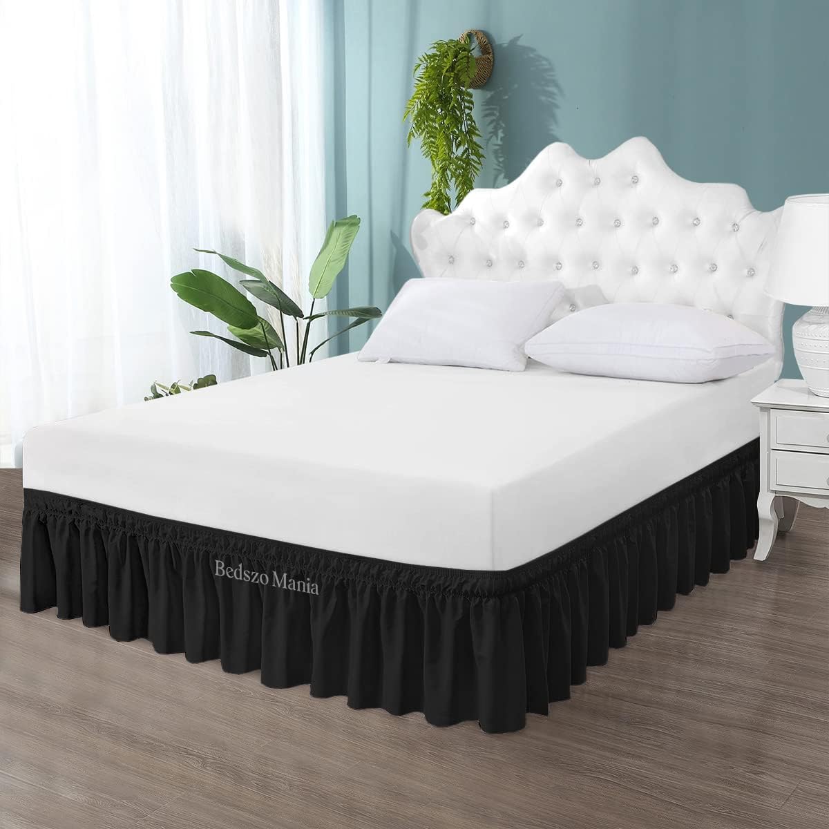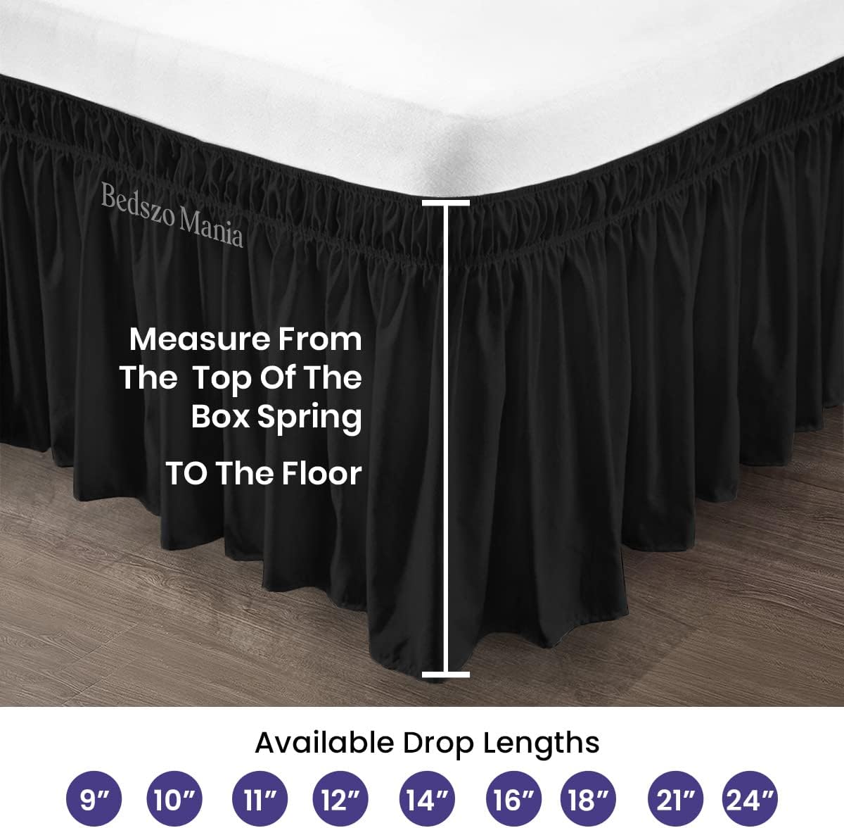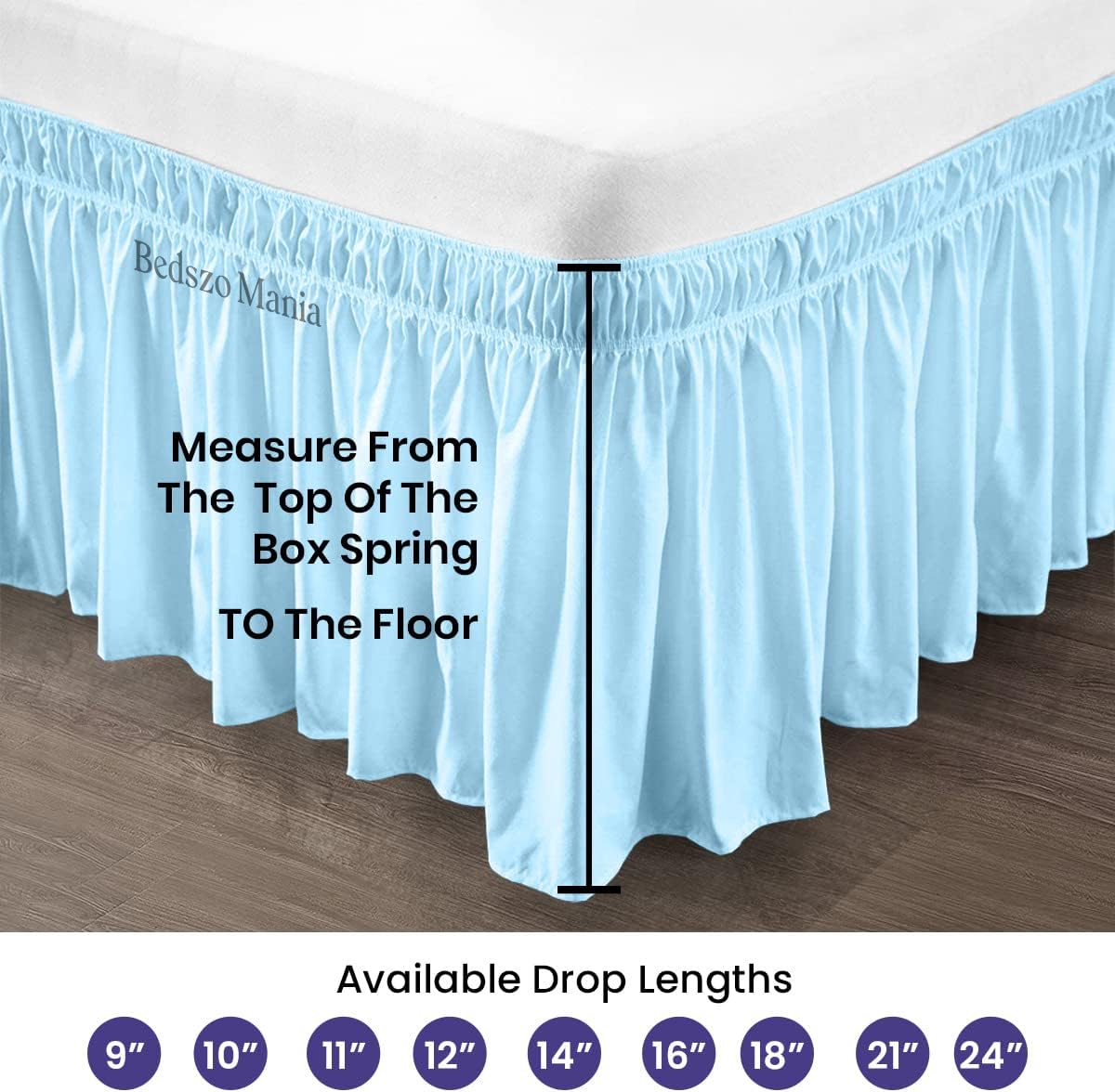 Wrap Around Bed Skirt 12" Inch Drop 100% MicrofibreFabric 1-Piece Bed Skirt Easy Fit Easy Care Fade & Wrinkle Resistant - Queen Size (60"X80"), White