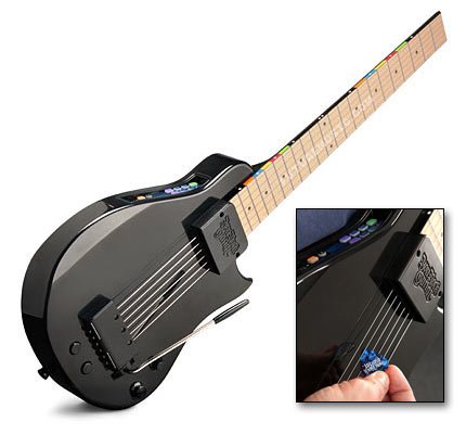 Now play your favorite guitar video games on the Nintendo Wii with real frets and strings !!!INCLUDES – You Rock Guitar and GameFlex Cartridge for Nintendo Wii.The You Rock Guitar is a full-fledged digital and MIDI guitar! It's fast, accurate and feels good to play due to the unique patented fretboard technology.99 internal presets allow you to choose from any of the internal 25 professionally sampled real guitar sounds, 50 general Midi synth sounds, 25 song & 50 drum loops.Because it's digital the YRG-1000 Never Needs Tuning. Select any one of the 65 internal tunings or design 9 custom tunings of your own.The unique You Rock Mode allows you to play along with the internal songs and never play a wrong! Learn to play quickly and easily.The You Rock Guitar features a built in recorder and even provides an input jack so you can play along with your favorite mp3 player or other audio devices.USB and MIDI ports allow you to connect the YRG-1000 to your favorite computer music software applications on Mac and PC and other MIDI instruments for recording and learning. USB allows for new downloadable content and upgradable firmware always keeps you up to date.With the optional Gam eFlex cartridges you can connect to your favorite video games like Guitar Hero and Rock Band or use a MIDI Pro Adapter for advanced play on Wii, PS3 and Xbox 360 platforms.The You Rock Guitar requires USB power or 4 AA batteries (not included). Includes: You Rock Guitar, GameFlex cartridge for Nintendo Wii, user manual, 1/4-inch guitar and USB cables, guitar strap and picks and quick start / guitar chord poster.