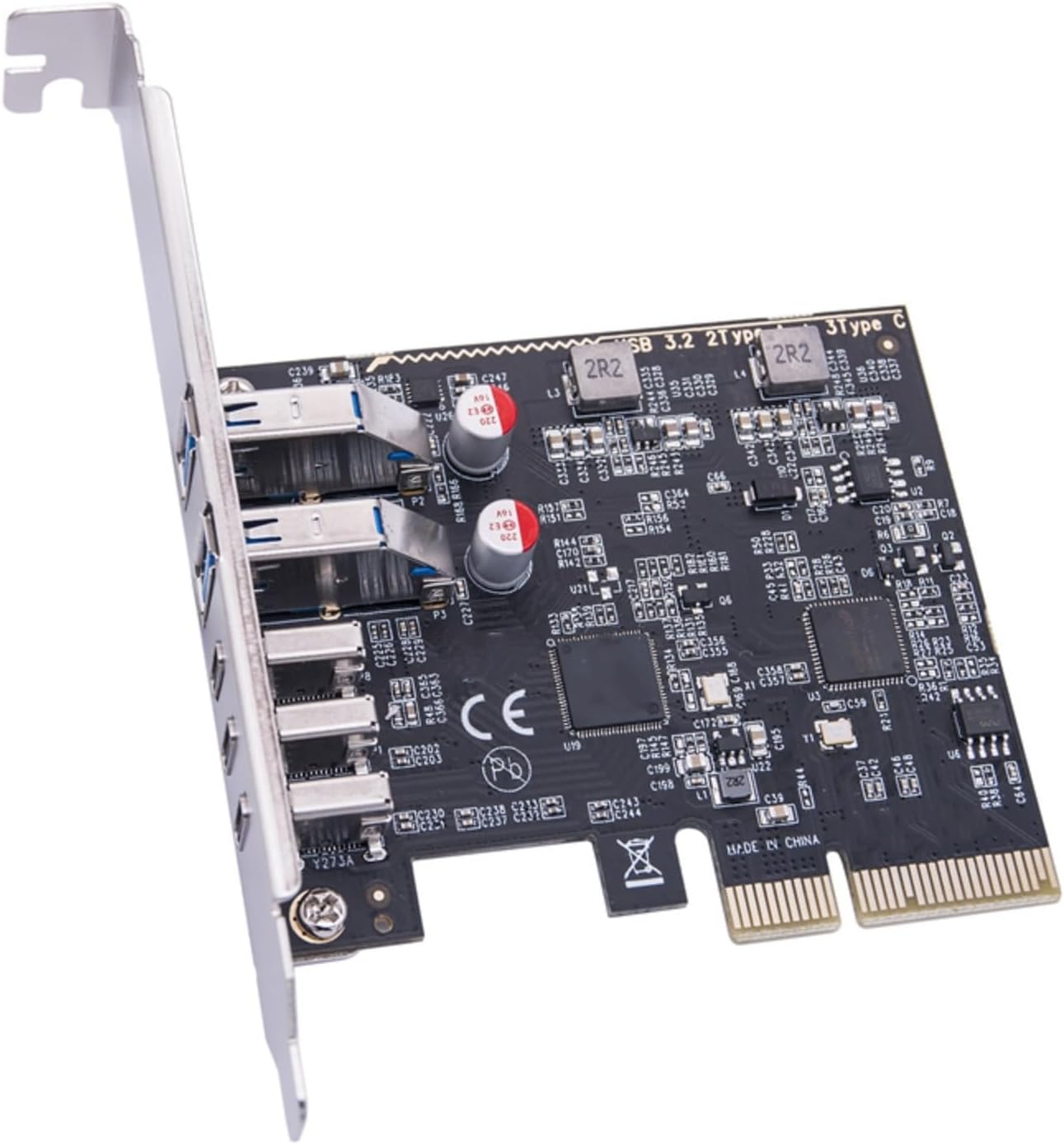 Efficient 10Gbps USB Expansion Card 2Port USB A And 3Port Type C Port PCIE 4 Card For Enhanceds ConnectivitysFeatures:connectivitys with 2A+3C Expansion Card, featurings PCIE 4 interfaces and delivering Fast Speed data transfer rates of up to 10Gbps, for enhancings your computer capabilities.This expansion card boasts with 1 independents Type C port offering exclusive 10Gbps bandwidth, while the remaining four Port share 10Gbps, all powereds by ASM2142+VL822 chipsets without the need for additional power supply.for enthusiasts and professional who require efficient data transfer and charging solution, this expansion card supports both full height and half height brackets, making it for various PC case.for home offices or professional workstations, this card allows simultaneous use of five USB interfaces, providing access to multiple devices and peripherals, while also supporting device charging with 2A on Type C and 1A on USB A Port.for WIN7, WIN10, WIN11 systems, this expansion card ensures broad usability across different platforms, though note that WIN7 requires driver installation for performances.Specifications:Materials: ABSInterfaces: PCIE 4 (needs to 4X8X16X slots)Output interfaces: TYPE-A+TYPE-C interfacesSpeed: 10GbpsSupporting size: full height baffle/half height baffle, supporting the use of large and small chassisesMain control chip: ASM2142+VL822 main controlPackage Includes:1Set PCIE Expansion CardNote:Please allow 1-3mm error due to manual measurement. make sure you not mind before bid.Due to the differences between different monitors, the picture may not reflect the actual of the item.
