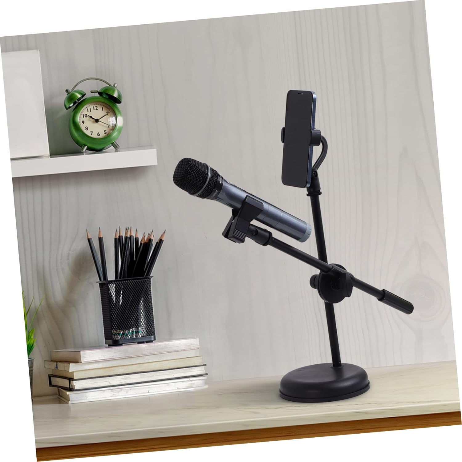 Package Include 1 × Round Base 1 × Metal Mic Stand 1 × Mic Clip Holder 1 × Phone Clip Holder 1 × U-shape Mic Clip 1 × Metal Adapter Characteristics -Mobile phone clip expansion range: 6-9.6cm; rotation range: 360° Microphone Stand - Adjustable: With detachable design, and being adjustable, the mic stand can be rotated and adjusted to the comfortable angle as you like table mic stand. - Durable: Made of plastic material, fine workmanship, the microphone stand is durable, wear-resistant, not easy to break and deform desk mic stand. -Color:Assorted Color telescopic Microphone Stand -Material:Plastic mic bracket - Size: 40.00X15.50X35.00cm/15.72X6.09X13.76in Stand for Microphone - Stable: The microphone clip can hold the mic firmly and stably, and with a phone holder, and with a thickened base, which allows it to be placed on the desktop stably Mic Stand with Mic Clip. - Detachable: The microphone stand can be easily assembled and detached, which makes it convenient for you to store when not in use, or carry for outdoor use telescopic mic Stand. - Multifunctional: The desktop microphone stand with a boom is versatile, for home recording, podcasting, live broadcasting, broadcasting, and Mic Mount. -Note: Suitable for 15-50mm diameter microphones desktop mic standGoods InformationStand for Microphone The microphone bracket with fine workmanship, , not easy to break and deform.mic bracket This is a microphone stand with a phone clip holder, made of plastic material, you can keep it for a long term.Mic Stand with Mic Clip This mic holder can be adjusted, you can adjust it according to your demands